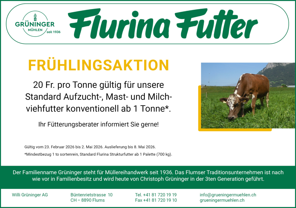 Frühlingsaktion Profitieren Sie von unserer Standard Aufzucht-, Mast- und Milchviehfutter Aktion: Zurück